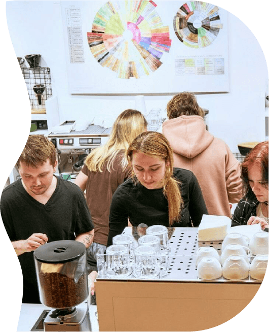 Мы ждём тебя в просторной и комфортной площадке для обучения, у нас лучшее оборудование и сырьё в индустрии кофеварения — всё это поможет тебе максимально быстро и легко влиться в процесс обучения. После прохождения курса ты всегда можешь заглянуть к нам в гости — наши двери открыты!